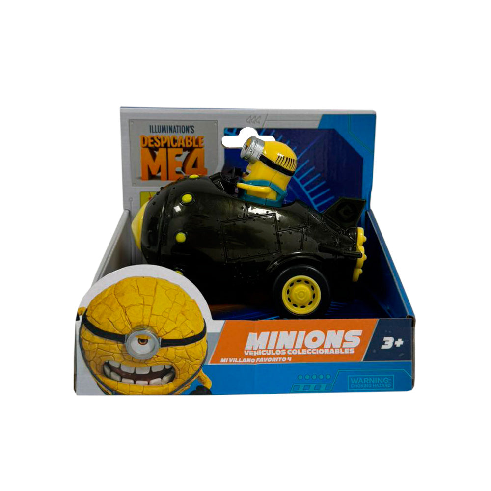 Estes veículos medem 13 cm de comprimento e apresentam um design colorido e detalhes. Os Veículos Minions incluem: Veículo Minion.